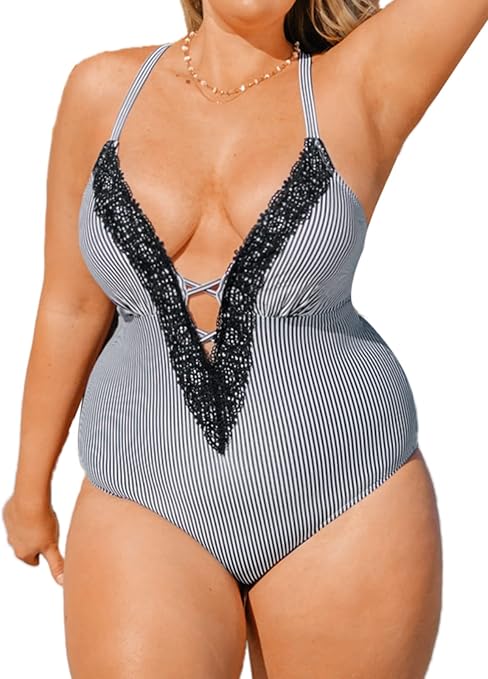 Our favorites are the CUPSHE Ruffled V Neck Swimsuit, SPORLIKE Ruffle Swimsuit, and CUPSHE Vintage Lace Deep V Swimsuit. These are so pretty when worn and offer a stylish way to enjoy the beach. They are also great for both small and large busts.